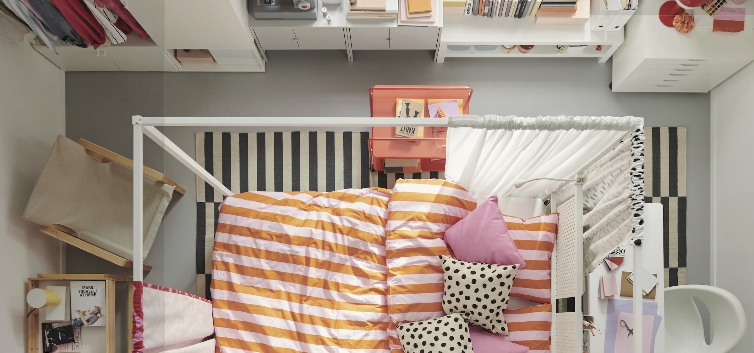 What and why: According to a WGSN report, 86% of Gen Z adults say their home is important both as a space to restore wellbeing and for self-expression. Additionally, bedroom space is shrinking and needs to serve more functions including a workspace, so this room created a flow where everything is accounted for along with a sleep sanctuary.