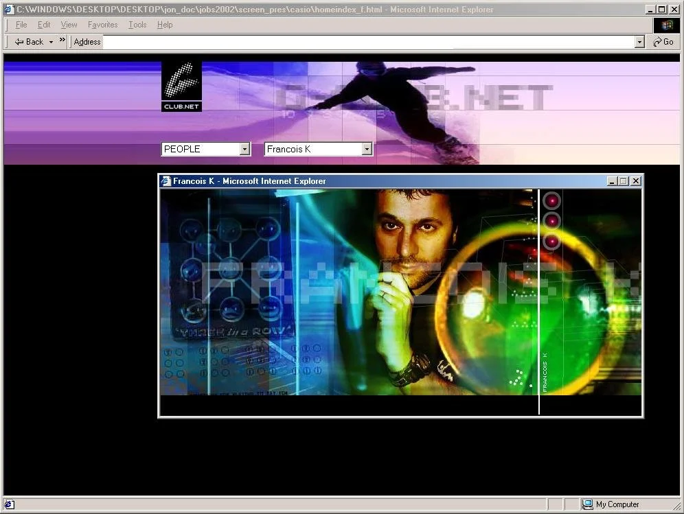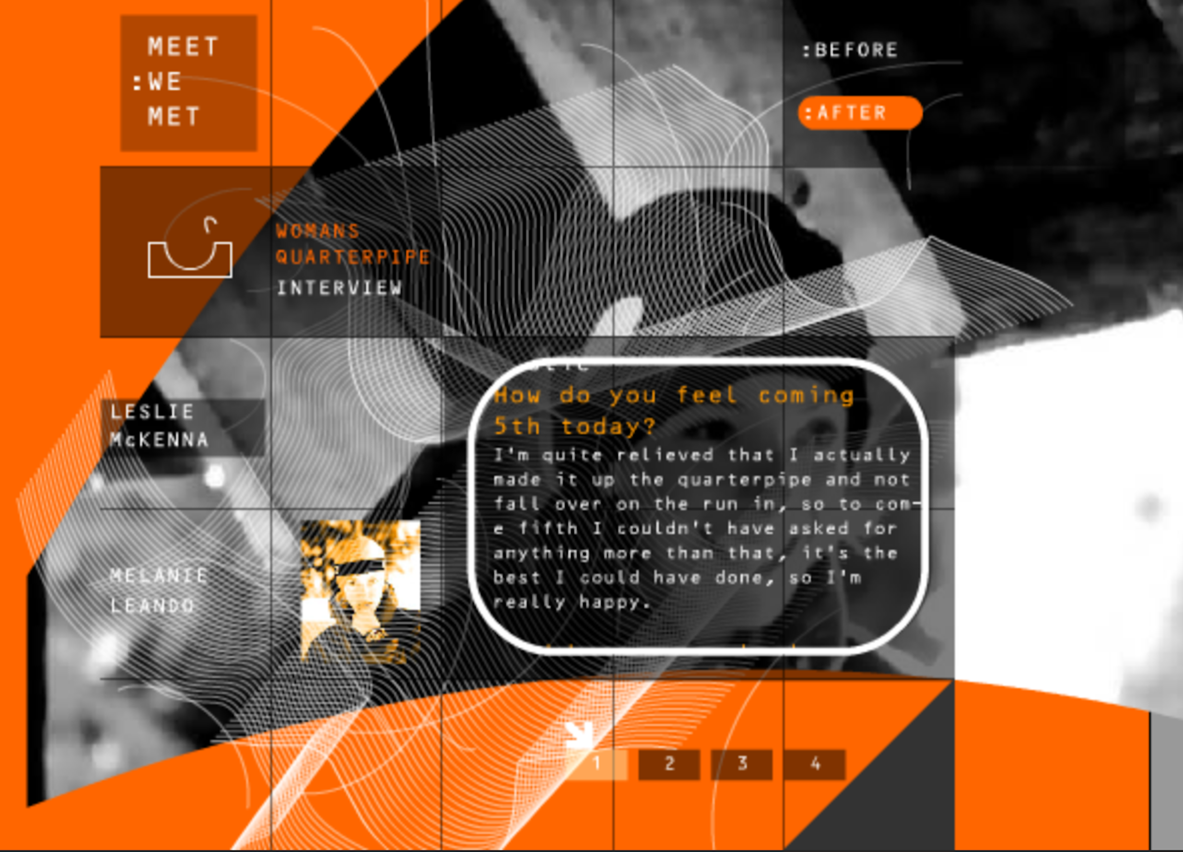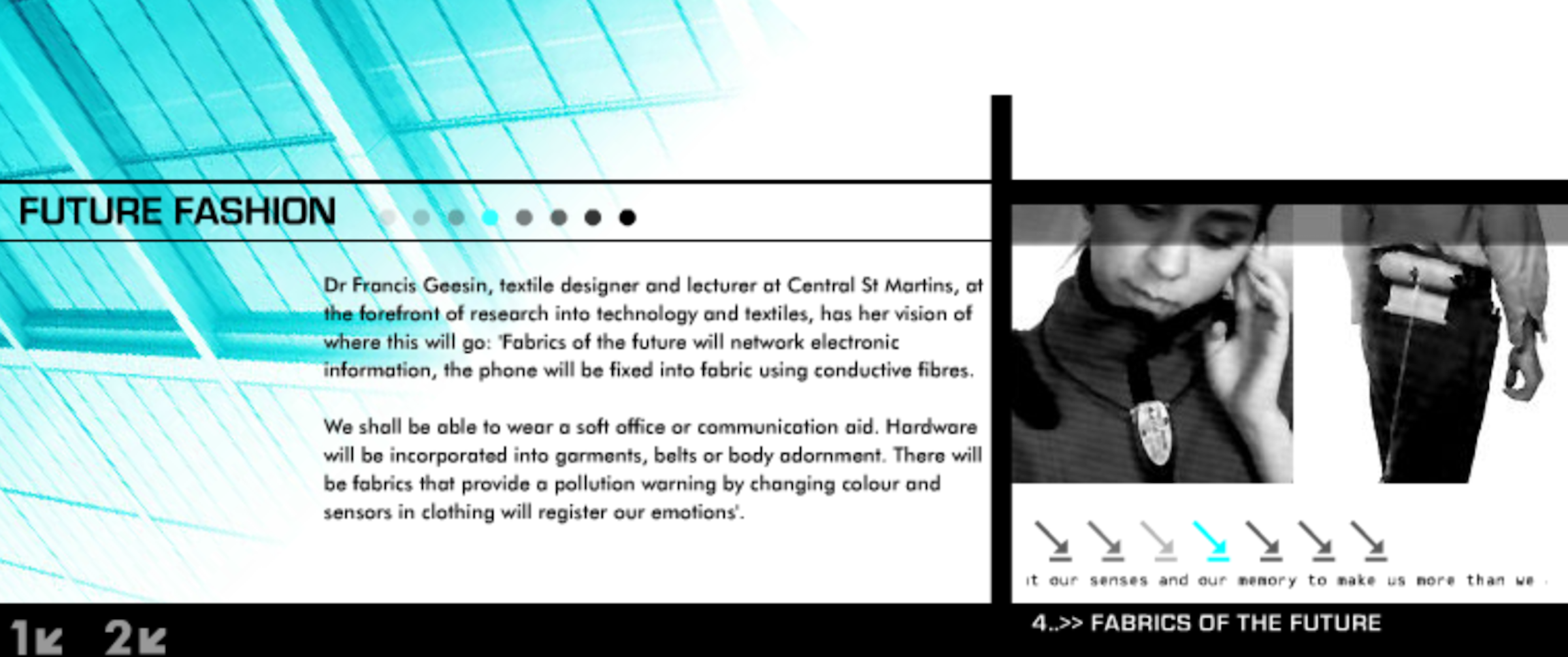 Screens from an article about wearable technology to celebrate launch of the Casio G-Shock watch with MP3 player; interviews with snowboarders, and home pages.