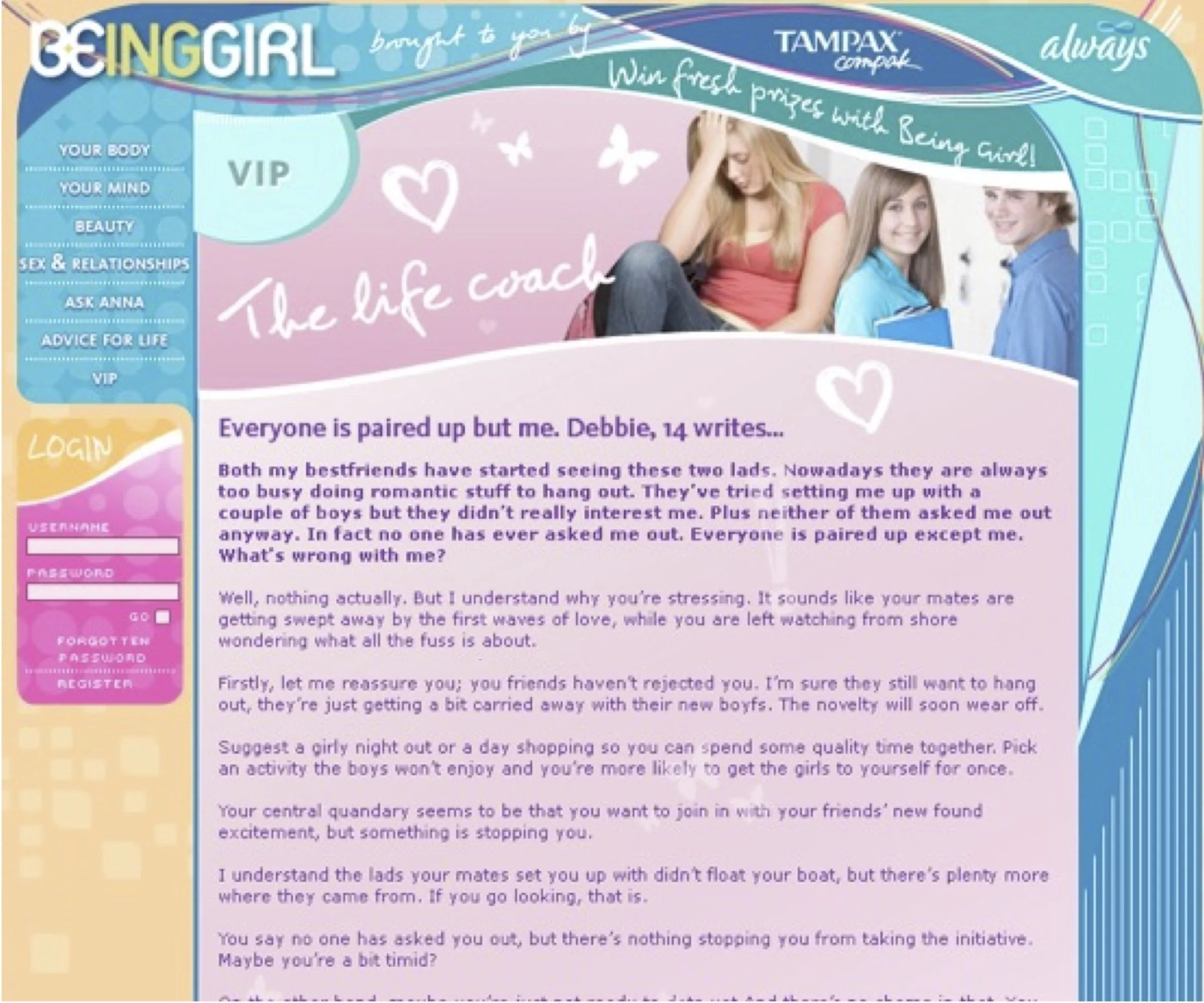 Miranda has been an editor for several brand websites. She commissioned and developed engaging, age-appropriate content for a refresh of Beinggirl.com – a Europe and Turkey wide site for teen girls with advice and information about periods, health, relationships, and self-esteem – including a interactive story where users decided what happened next. The refresh increased community engagement by up to 50% in some countries and 30% overall.