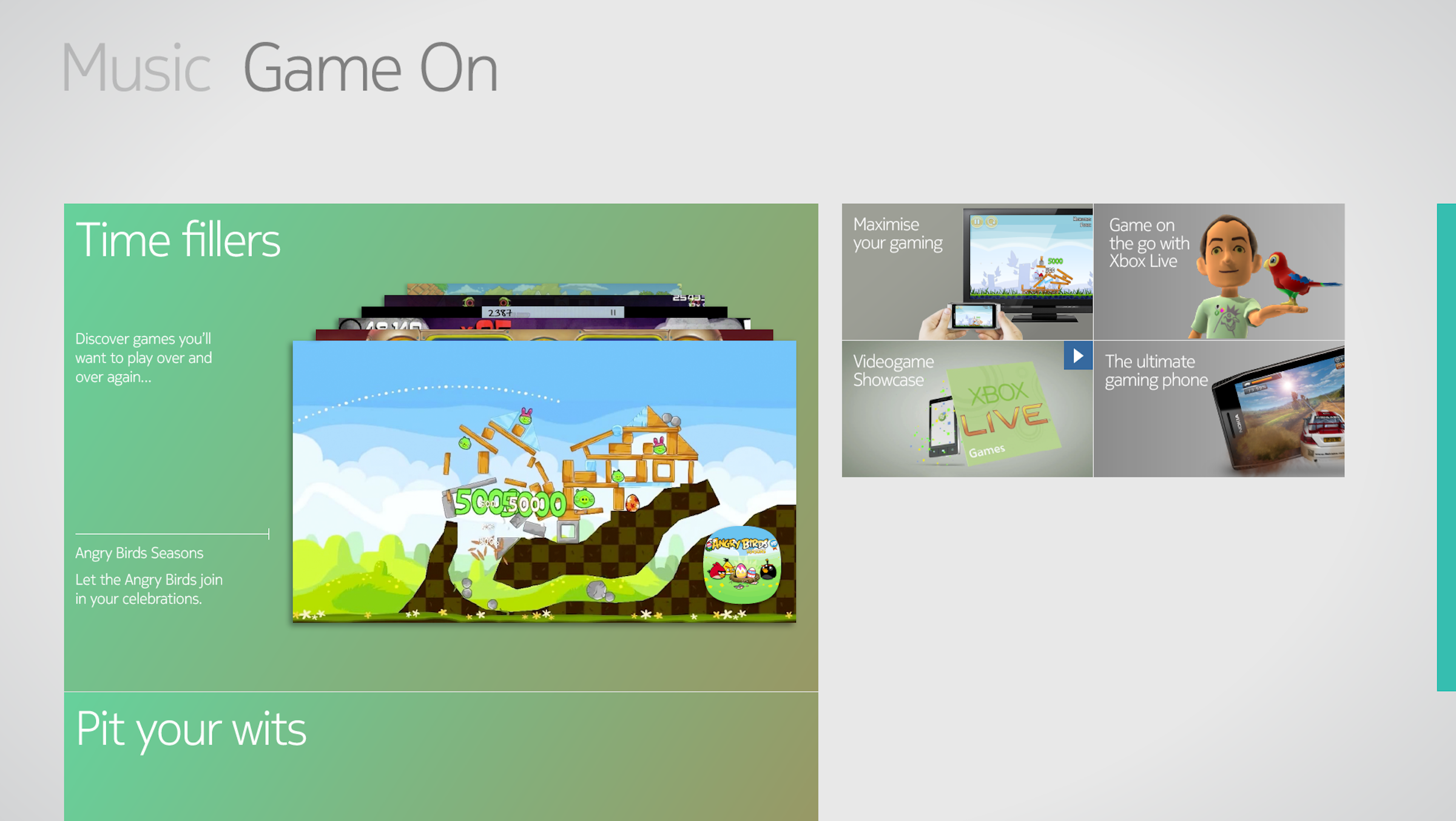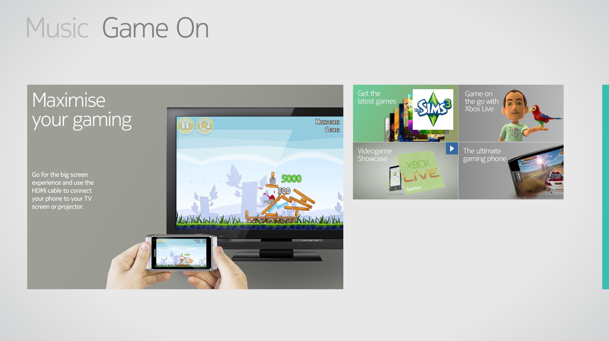 Each tile demonstrates different aspects of how Nokia device can integrate fully with and enhance your existing gaming setup.